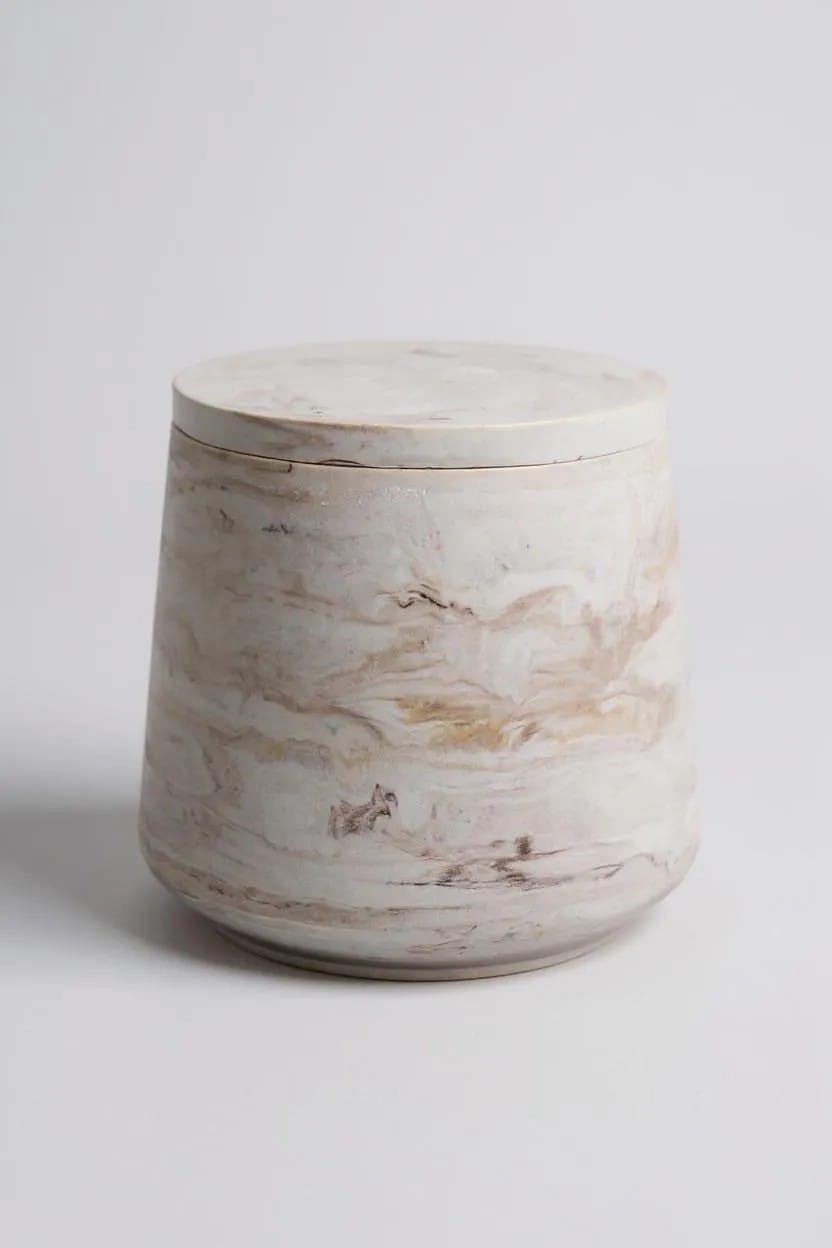 El yapımı mermer desenli taş kalıpta, tamamen doğal soya wax kullanarak hazırladığımız bu mum, bulunduğu ortama sadece hoş bir koku değil, aynı zamanda şıklık da katıyor. 🌿